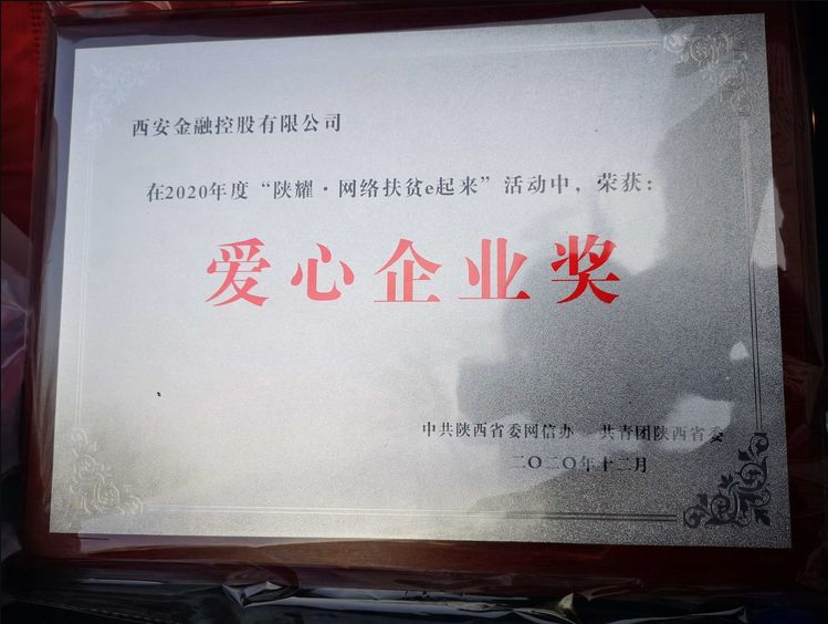 喜讯!西安金控公司荣获2020年度“陕耀•网络扶贫e起来”爱心企业奖