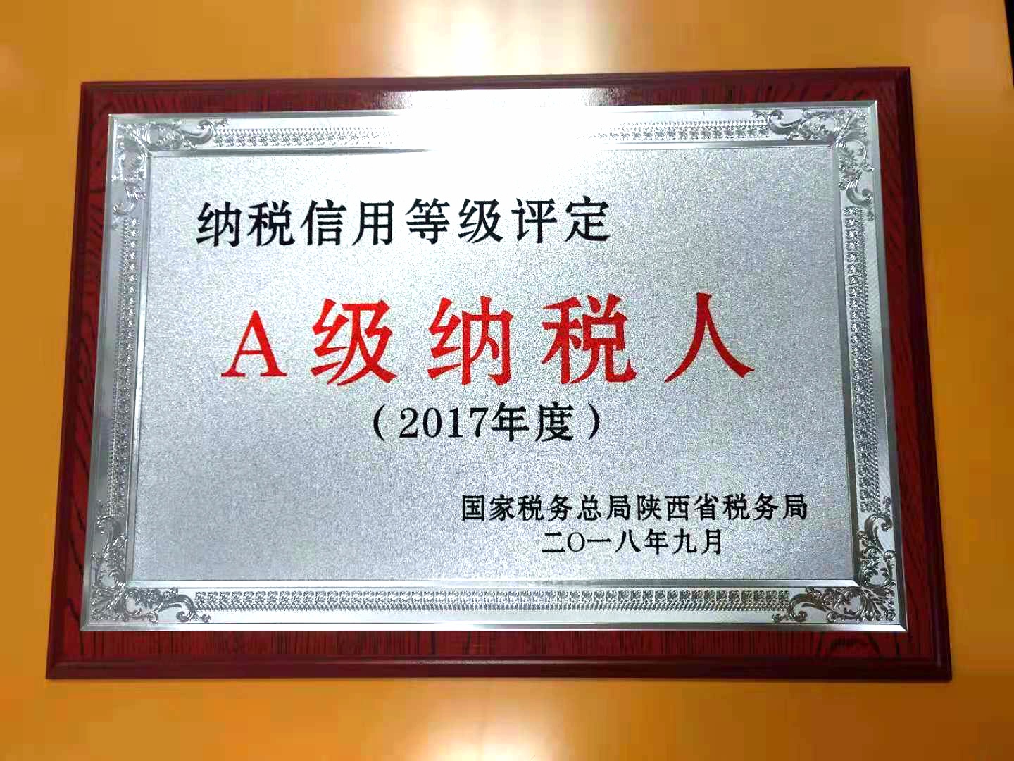 近日,经国家税务总局陕西省税务局评定,担保公司获得了2017年“A级纳税人”荣誉称号。